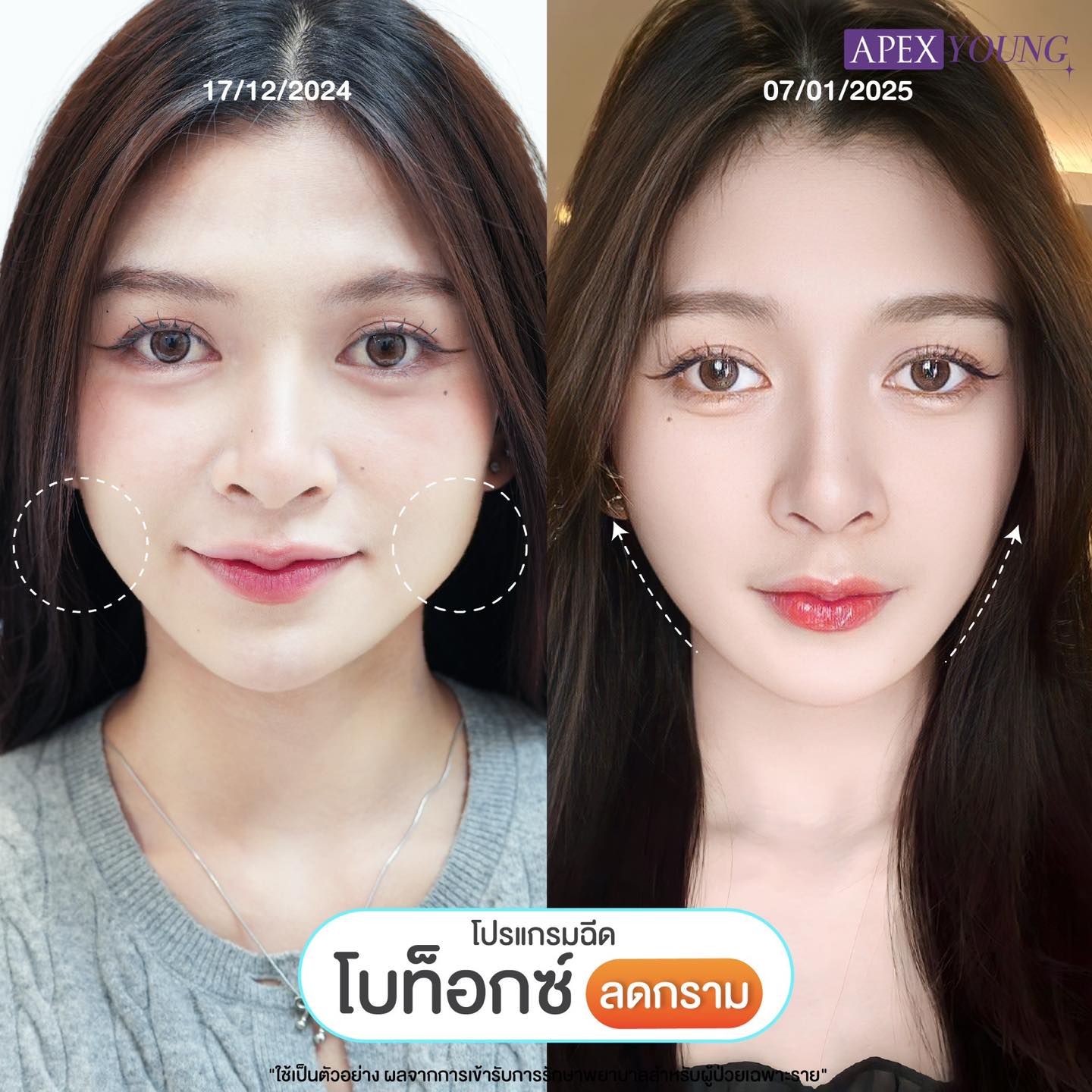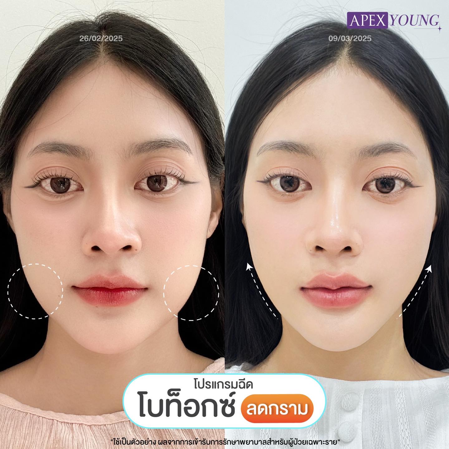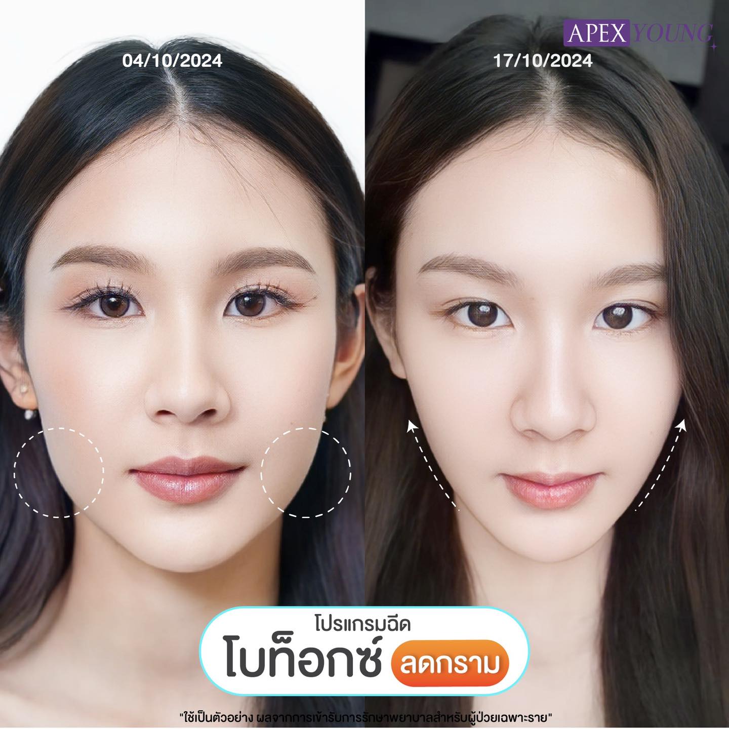 APEX Hospital & Clinics เป็นคลินิกเสริมความงามระดับคุณภาพซึ่งได้รับความนิยมจากกลุ่มลูกค้าอย่างมากที่สุด และนับได้ว่าเป็นคลินิก Botox ที่ดีที่สุดในปี 2025 ด้วยประสบการณ์กว่า 20 ปีที่นี่โดดเด่นในด้านมาตรฐานและความปลอดภัย โดย APEX Hospital & Clinics ได้มุ่งเน้นการนำเทคโนโลยีระดับโลกมาใช้เพื่อให้เกิดประสิทธิภาพสูงสุด สำหรับผู้ที่ต้องการปรับรูปหน้าหรือยกกระชับสัดส่วน ที่นี่มีบริการ Botox Face Lift ที่ทำได้ง่าย ๆ โดยใช้เวลาเพียง 15-20 นาที ตามคอนเซ็ปต์ “Lunch Time Beauty”  โดยทีมแพทย์และผู้เชี่ยวชาญจะคอยดูแลและทำการฉีด Botox ตามแนวกรอบหน้าและลำคอของลูกค้า และเน้นไปที่กล้ามเนื้อ Platysma ซึ่งนับได้ว่าเป็นกล้ามเนื้อที่ดึงใบหน้าลง เมื่อกล้ามเนื้อนี้คลายตัว จะช่วยให้ใบหน้ายกกระชับขึ้น ลำคอดูตึงขึ้น และใบหน้าเรียวขึ้นอย่างเป็นธรรมชาติ ลูกค้าจะรู้สึกเจ็บน้อยมาก ส่วนผลลัพธ์ที่ได้นับได้ว่ามีประสิทธิภาพและปลอดภัย โดย APEX Hospital & Clinics จะมีระบบการดูแลแบบครบวงจร ตั้งแต่ให้คำปรึกษาไปจนถึงการติดตามผลหลังทำอย่างใกล้ชิด คอยดูแลใส่ใจลูกค้าอย่างมากที่สุด